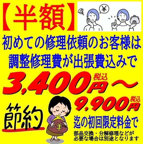 初回限定( 新規 )で調整修理費を半額料金で